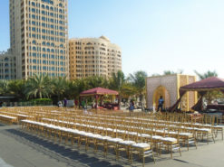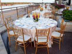 The Gold Chiavari Chair is great for any event but is especially perfect for weddings, sit-down dinners, formal parties and banquets. This beautiful and classic furniture add elegance and sophistication to any set up. The Gold Chiavari Chair is available for rent and sale in Dubai, Abu Dhabi and the UAE, This dining chair will work perfectly with any of our dining table pieces but especially with our Avalon Grand Gold Dining Table. Contact us now to order the Gold Chiavari Chairs for sale or rent or for any other event furniture needs.