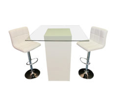 The Seville Leather Bar Stool with Back is available for rent and sale in Dubai, Abu Dhabi and the UAE. Its soft leather and adjustable chrome stand makes for a comfortable perch during cocktail parties or any other type of event. This high stool is also a great choice for conferences and goes perfectly well behind registration counters or registration desks like the May Counter. Contact us now to order the Seville Leather Bar Stool with Back or for any other event furniture need.