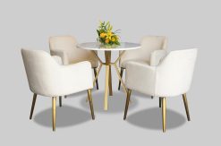 | Description | Smooth finish white wooden table top, gold metal base |