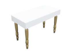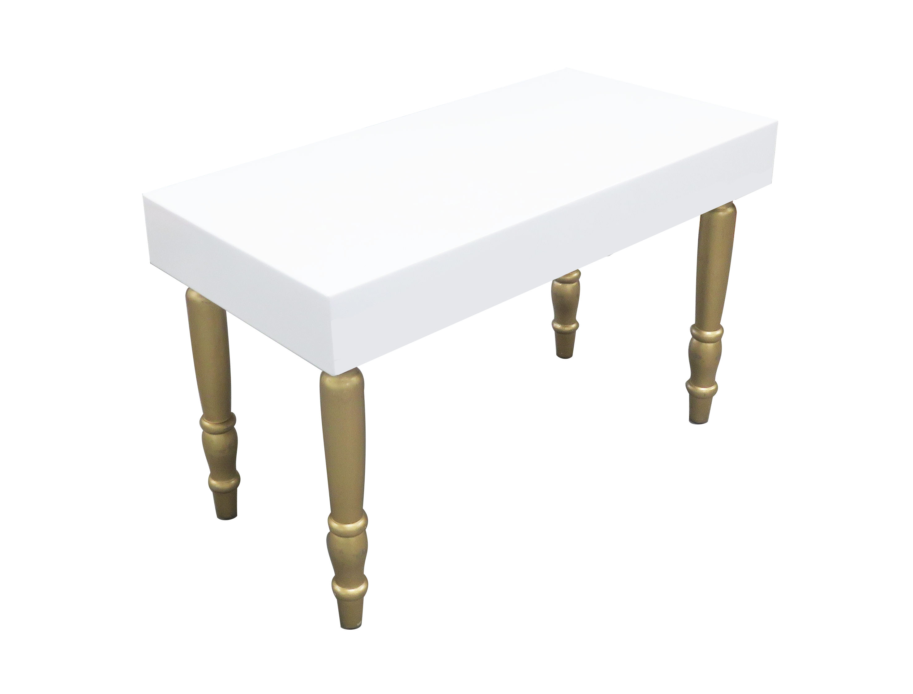 | Specifications | smooth finish, semi-gloss white wooden table top; metallic gold removable wooden legs |