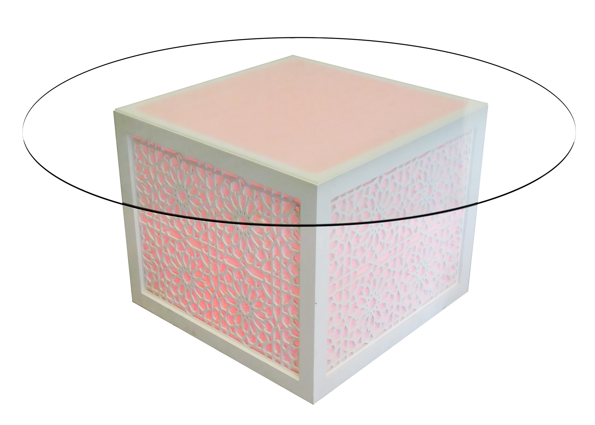 The Camlann Mashrabiya Round Glass Dining Table is available for rent within Dubai, Abu Dhabi and the UAE. This dining table is perfect for large parties as it can accommodate up to 10 people. It can also be customized with lights to complement any color theme. Its changing lights will not only provide a warm ambiance to your event but also a kaleidoscope of colors to your scene. Contact us now to order the Mashrabiya Round Glass Dining Table or any other event furniture you require.