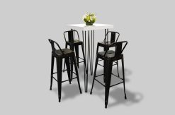 Hairpin Dice White High Table, Black Legs for rent in Dubai, Abu Dhabi, UAE, GCC. This cocktail table is great for outdoor events, exhibitions, cocktail parties. Pair with the Pauchard Metal Bar Stool – White for the perfect set up. Also available as a COFFEE TABLE and as a CAFE TABLE. Contact us now to order the Hairpin Dice White High Table, Black Legs or for any other event furniture need or visit our INSTAGRAM page for set up inspiration.