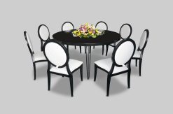 The Hairpin Opal Black Dining Table is available for rent in Dubai, Abu Dhabi, UAE, GCC. This dining table is great for outdoor events, weddings, VIP events, gala events. Pair with the MIDNIGHT DIOR DINING CHAIR for the perfect set up. Seats maximum of 8 people. Also available in RUSTIC and WHITE. Contact us now to order the Hairpin Opal Black Dining Table or for any other event furniture need or visit our INSTAGRAM page for set up inspiration.