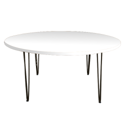| DESCRIPTION | Smooth white wooden table top with black removable metal legs. |