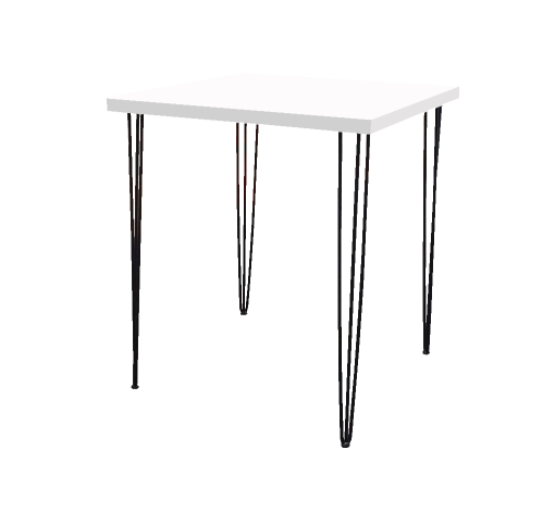 Hairpin Square White High Table, Black Legs for rent in Dubai, Abu Dhabi, UAE, GCC. This bar table is great for exhibitions, outdoor events, cocktail parties. Pair with the Pauchard Metal Bar Chair – White for the perfect set up. Also available as a COFFEE TABLE and as a DINING TABLE. Contact us now to order the Hairpin Square White High Table, Black Legs or for any other event furniture need.