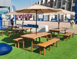 Kwikset Beach Umbrella is available for rent in Dubai, Abu Dhabi, UAE, GCC. This outdoor umbrella is perfect for events at the beach or at the park and offers protection from the elements so you can enjoy a day out without worrying about the heat from the sun or getting wet from the rain. Pair with the Bratton Picnic Table and Bench Set for the perfect set up. Contact us now to order the Kwikset Beach Umbrella or for any other event furniture need.