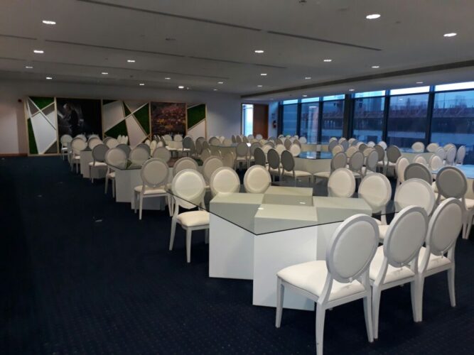 If you are looking for a large glass-top dining table, the Le Minou Edge Dining Table is the perfect furniture for you. Its tempered glass surface atop smooth-finished gloss-white wooded base adds sophistication to your event setup. The 12-Seater Le Minou Edge Dining Table is available for sale or for rent in Dubai, Abu Dhabi and the UAE.