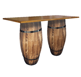 | DESCRIPTION | wooden barrel finished with natural/colorless stain topped with a rustic wooden bar |