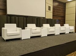 The Sophie White 1-Seater Armchair is available for rent in Dubai, Abu Dhabi and UAE. This sofa is perfect for exhibitions, conferences, VIP events, majlis and as stage furniture. Pair with any of our COFFEE TABLES for the perfect set up. Also available as a 2-Seater Sofa and a 3-Seater Sofa. Contact us now to order the Sophie 1-Seater Armchair or for any other event furniture need.